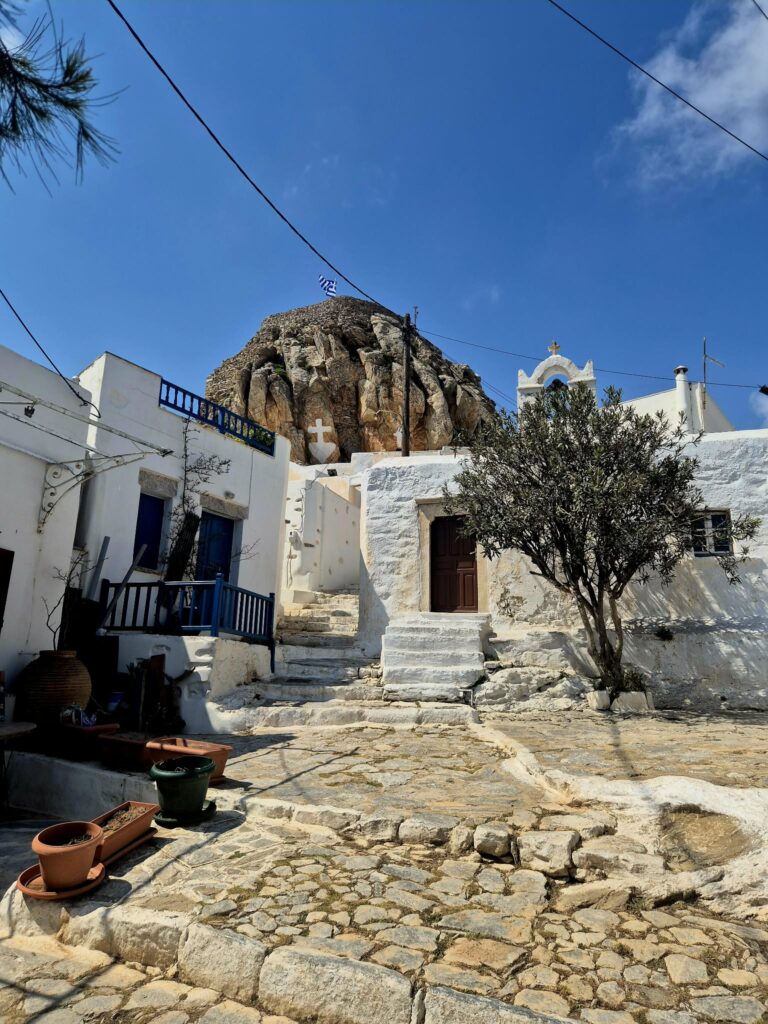 Το τρίτο και σημαντικότερο στοιχείο αυτού του νησιού είναι η αυθεντικότητα. Κατσίκια και πρόβατα να τριγυρνούν στους δρόμους, παππούδες στα καφενεία να σου διηγούνται ιστορίες από τα παλιά, ντόπιοι που ασπρίζουν τα σπίτια τους και τα δρομάκια και το κάνουν με τόση ευχαρίστηση και προσήλωση, σαν να προσέχουν ένα μικρό μωρό.